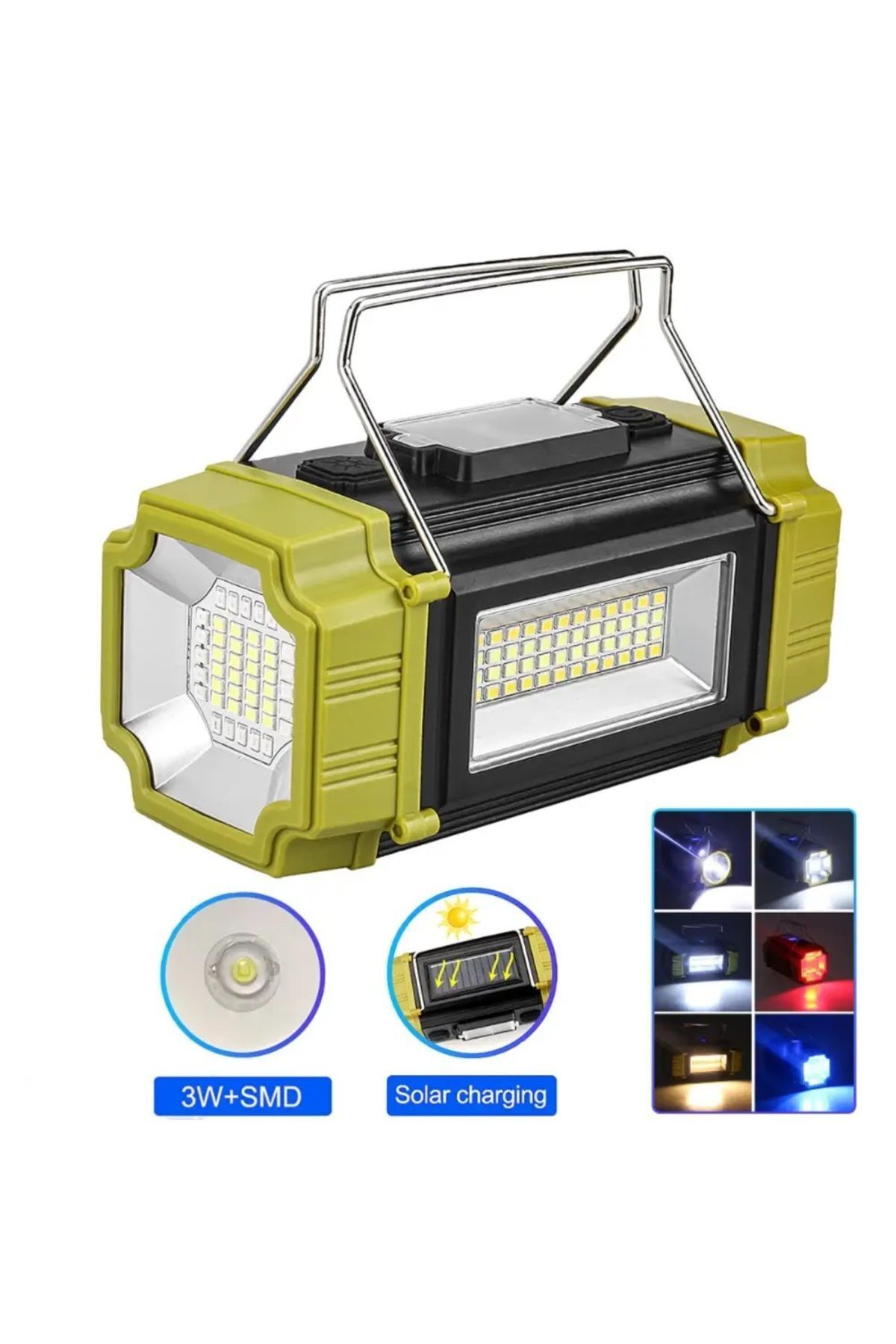 Açık hava etkinlikleri için şarj cihazı ve dört renkli ışıkla birlikte çok işlevli kamp feneri