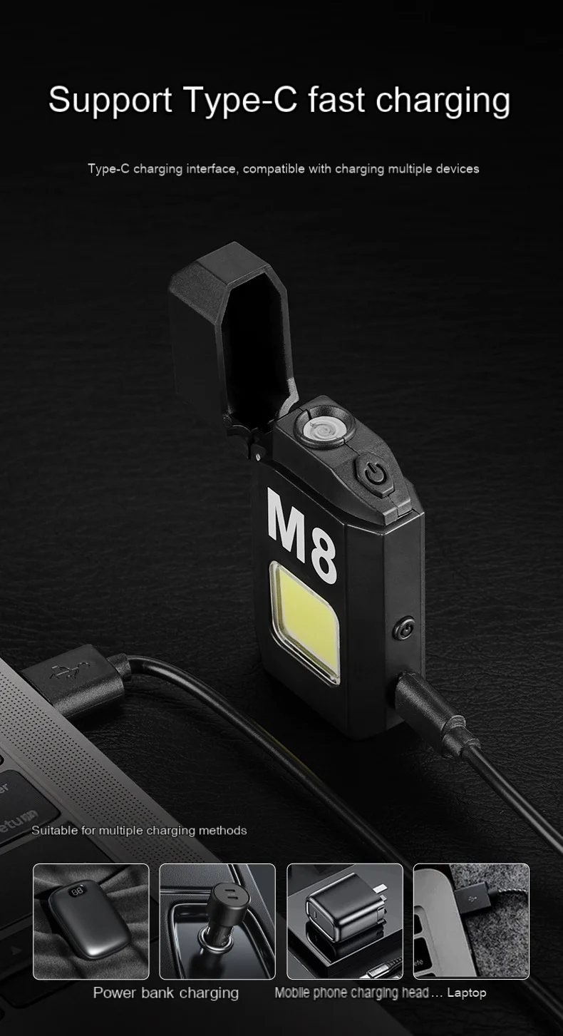 COB LED Mini El Feneri | 800 Lümen | Şarjlı | Su Geçirmez | Mıknatıslı | Şarjlı Çakmaklı
