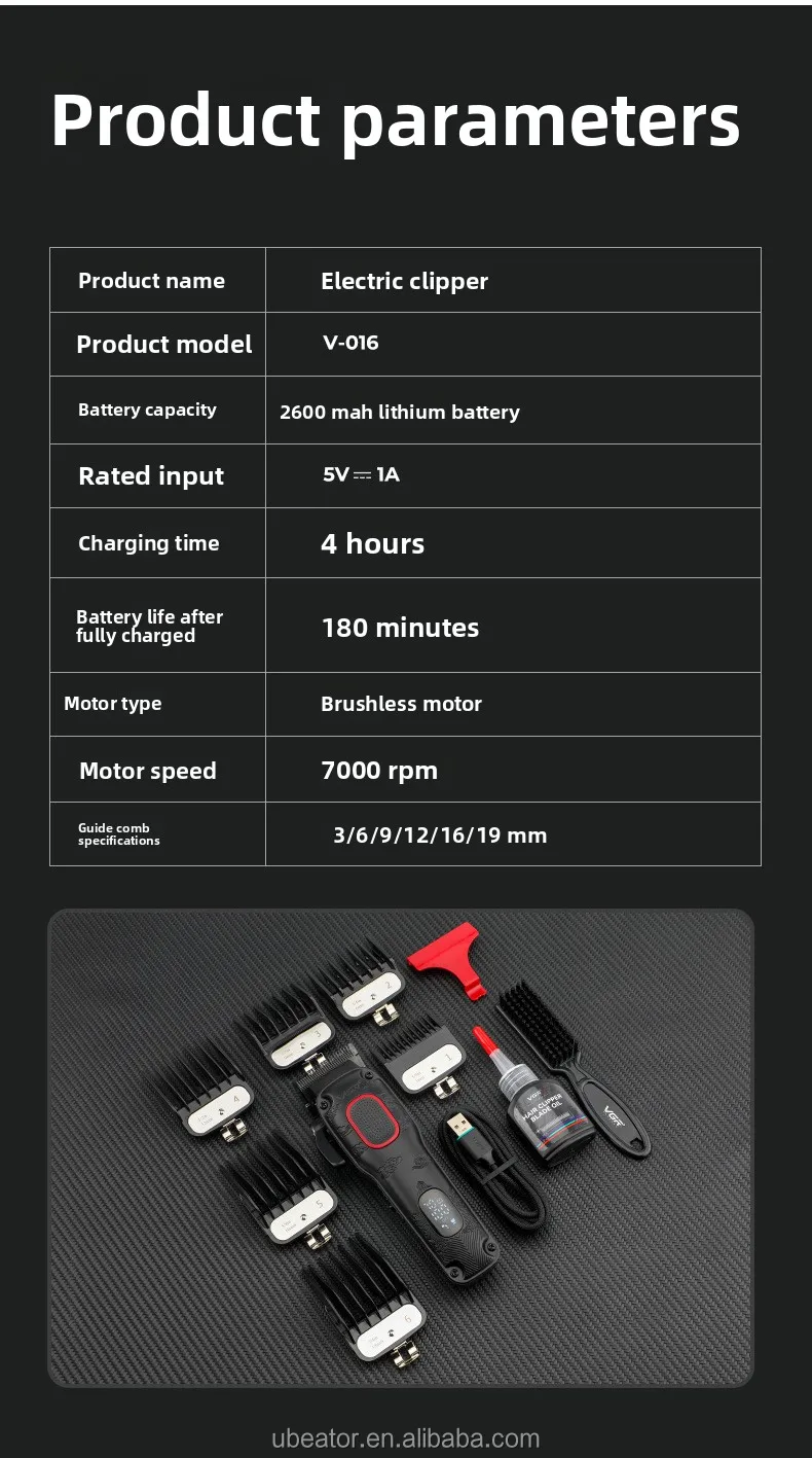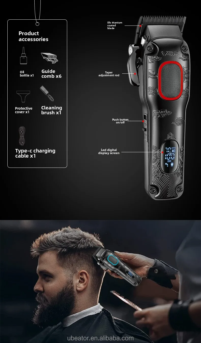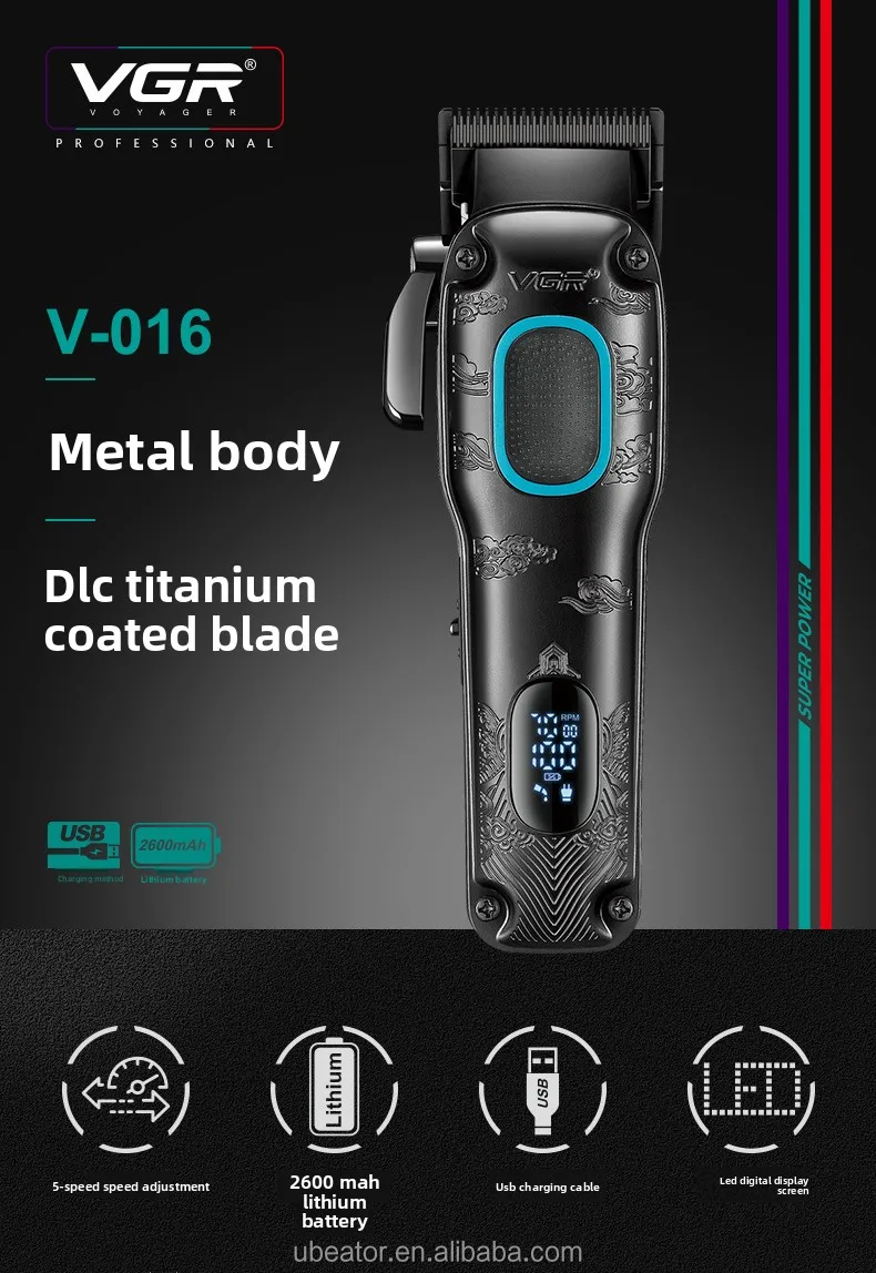 VGR V-016 BLDC Motor 7000RPM berber erkekler için şarj edilebilir profesyonel saç kesme makinesi