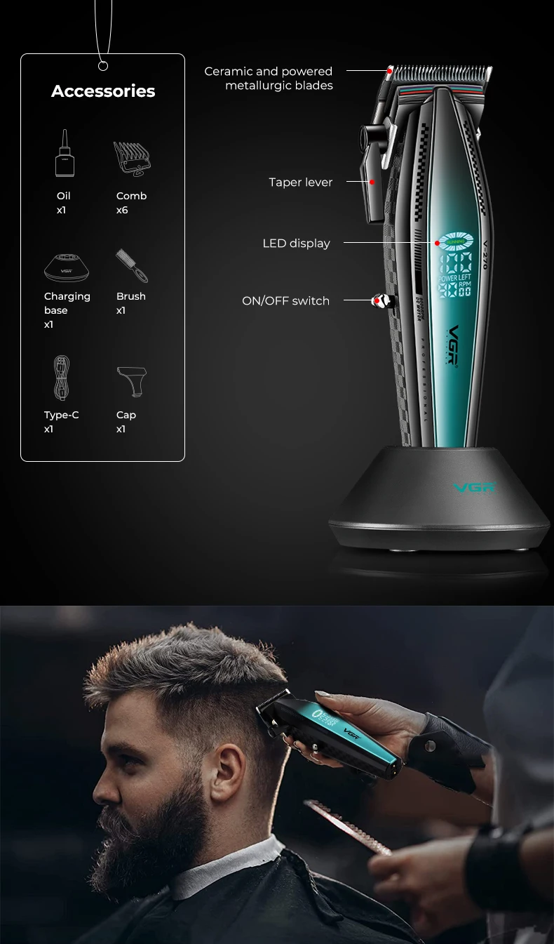 VGR V-270 Profesyonel Saç Kesme Makinesi, 9000 RPM Yüksek Hızlı Motor ve LED Ekran